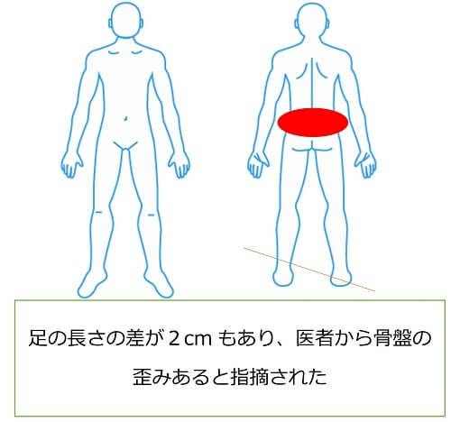 足を長さが2センチ短いと指摘。腰痛もあり今後痛みが強くなって不安